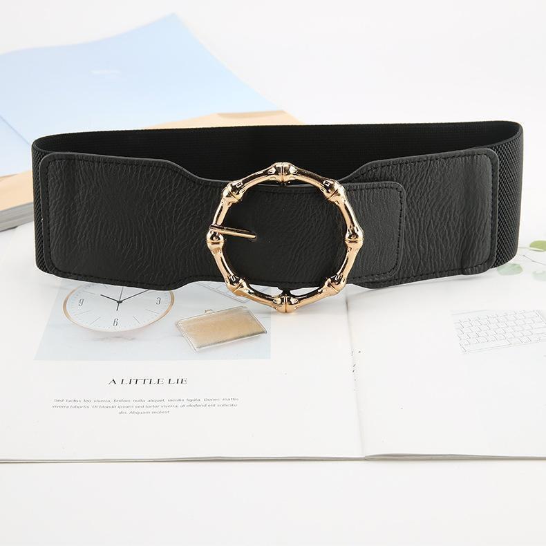 - ★ブラック★金バックル幅広ゴムベルト レディースベルト