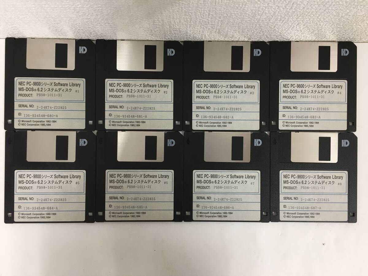 - ●○G637 NEC PC-9800シリーズ 3.5インチ版 MS-DOS 6.2 システムディスク 8本セット○●