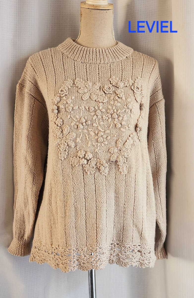 - 美品 LEVIEL 刺繍とモチーフが可愛い厚手セーター プルオーバー ニット リブ