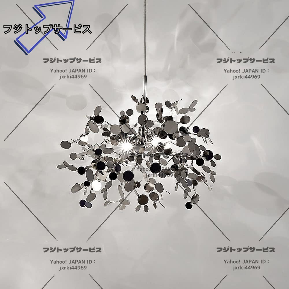 - シャンデリア ステンレス鋼 3灯 LED電球付き 省エネ インテリア照明 手作り吊り下げ照明 引掛けシーリング式 照明器具(昼光色)