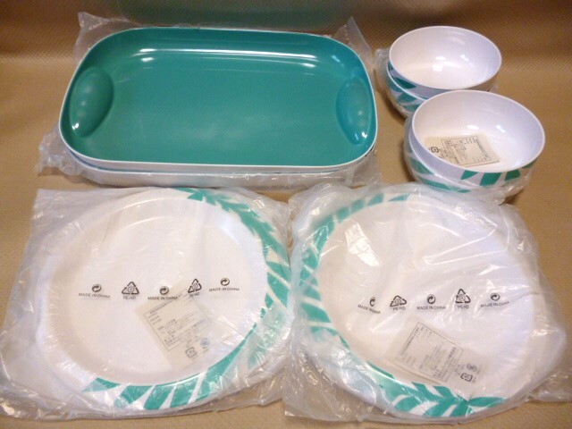 - タッパーウェア マハロ ダイニングプレート 4枚 ボール 4個 お盆(トレイ) 2枚 未使用 トレイのみUSED メラミン樹脂 /T15