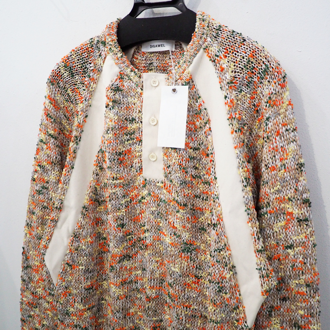 > 新品 定価41800円 ディガウェル 23ss 春秋 ヘンリーネック サマー セーター ベージュ オレンジ メンズ M DIGAWEL コットン ミックス ニット