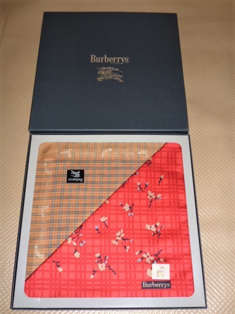 - バーバリー Burberrys 赤 花柄 ベージュ ノバチェック 縁は犬柄 ハンカチ 2枚 正規品 新品 B6