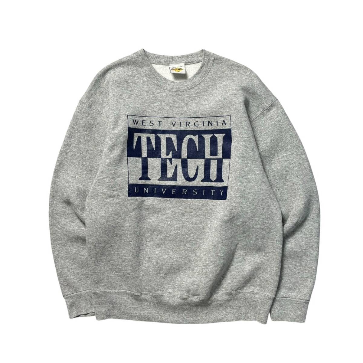 - Lサイズ 90s USA製 CAMPUS 古着 スウェット 裏起毛 肉厚 厚手 カレッジロゴ ボックスロゴ TECH バージニア 灰色 グレー