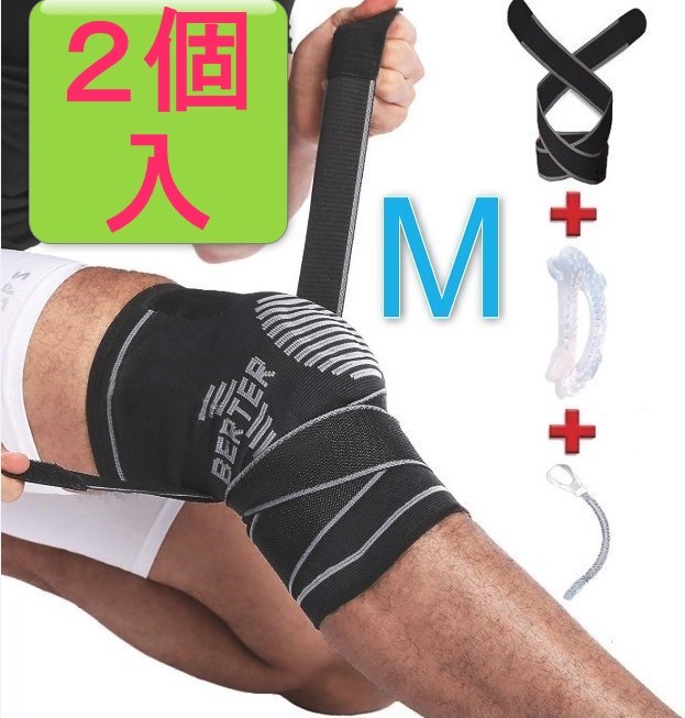 - [新品][送料込] 2個入 膝サポーター M 膝の衝撃保護シリコン入 BERTER スポーツ 医療用 両ヒザ用 保温 左右兼用 関節 靭帯 筋肉保護