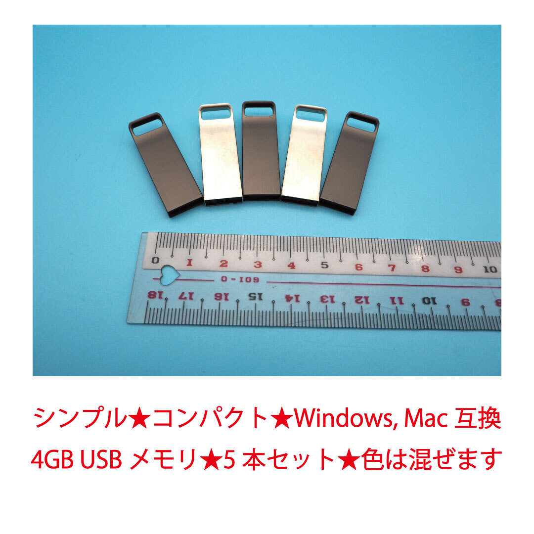 > ★Windows★MAC★互換★FAT32フォーマット済み★USBメモリ★4GB★5本セット★シンプル★コンパクト★メモ代わりちょうどいいサイズ容量064
