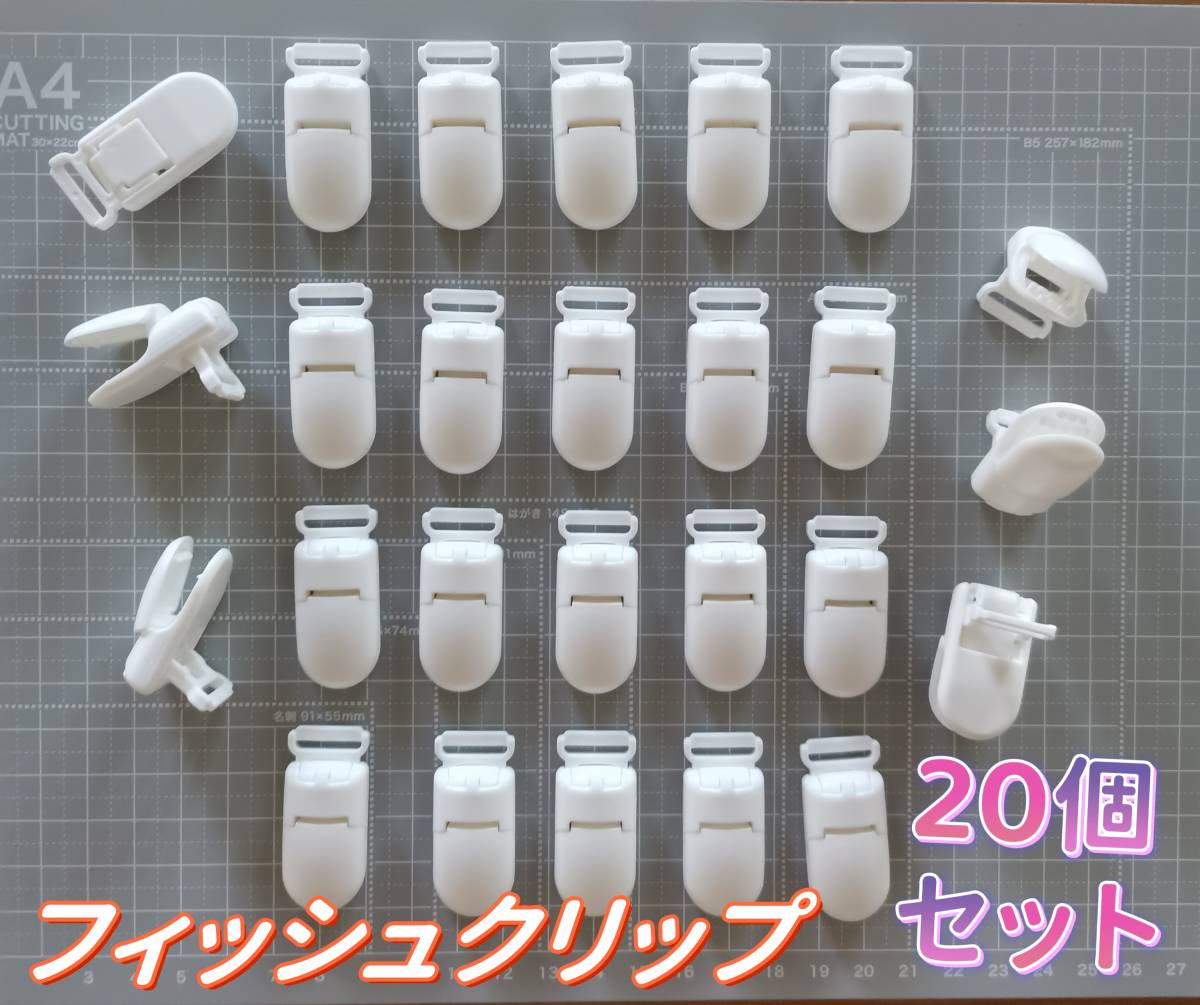 - 新品!フィッシュクリップジャンボ【 20個セット 】名札クリップ 手芸パーツ落下防止ホワイトハンドメイド固定白手芸ストラップ交換金具
