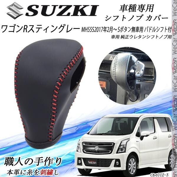 > ワゴンRスティングレー シフトノブ スズキ DIY 本革材質 内装カスタム パーツ アクセサリー 爪キズ防止 取付簡単 MH55S cbt12赤線