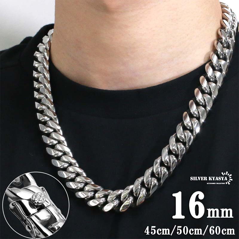 - (60cm) 316L 幅16mm 極太 メンズネックレス シルバー 喜平チェーン マイアミキューバンリンク 喜平ネックレス