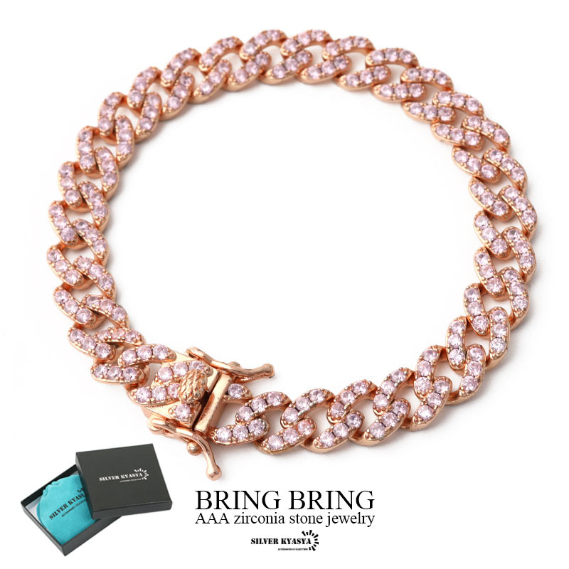 > (7inch(約18cm)) 喜平チェーンブレスレット CZ 5A パヴェ rosegold GP系 ダンス ピンク BOX付属