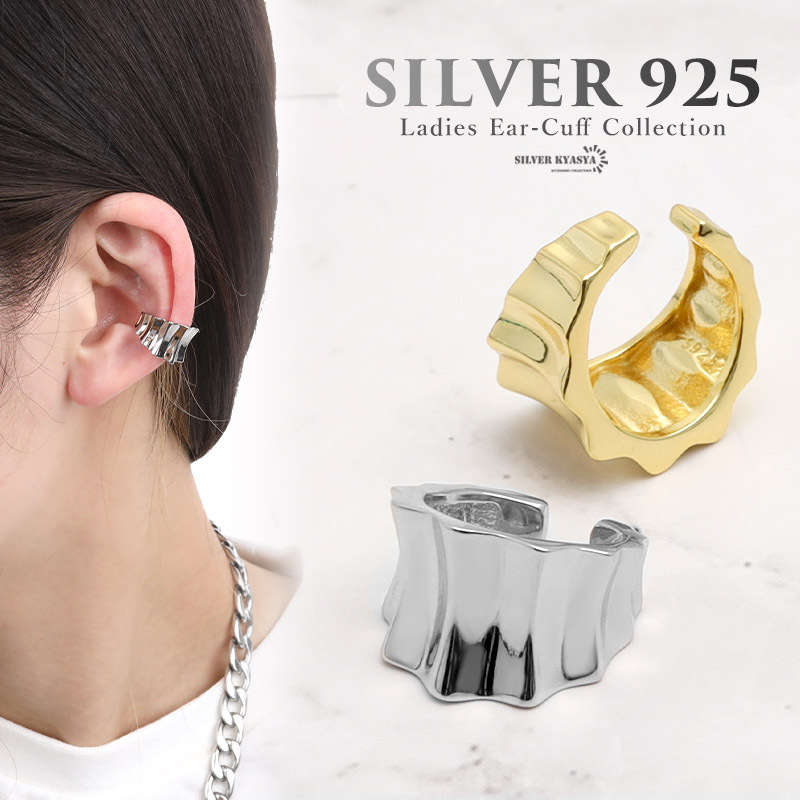 > (ゴールド) イヤーカフ シルバー925 ゴールド シルバー ギザギザ 多角形 耳の穴不要 イヤークリップ フェイクピアス 片耳用