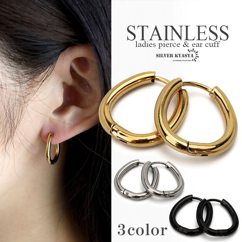 - (シルバー) ステンレス素材 両耳 馬蹄ピアス ホースシューピアス レディース Uピアス フープピアス 金属アレルギーフリー