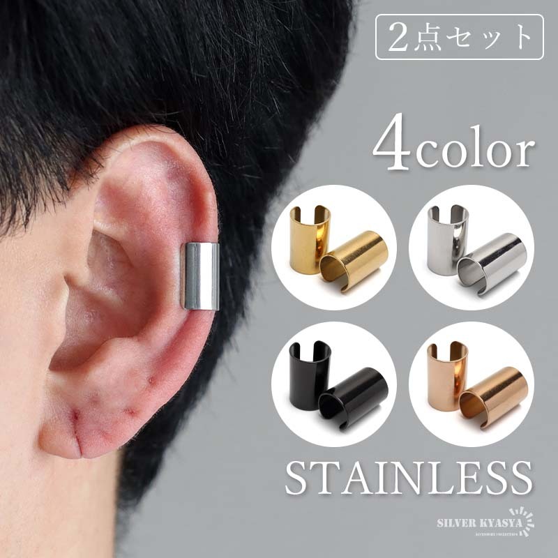- (ローズゴールド) ステンレス シンプルイヤーカフ 耳の穴不要 ワイドイヤーカフ 幅広 メタル 4色 両耳2点 金アレ対応
