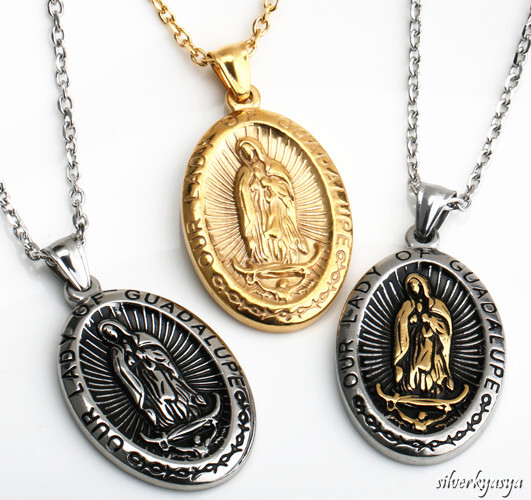 - (B-タイプ、50cm) ステンレス素材 不思議のメダイ ネックレス ラージ ペンダント マリア 聖母 ゴールドコイン