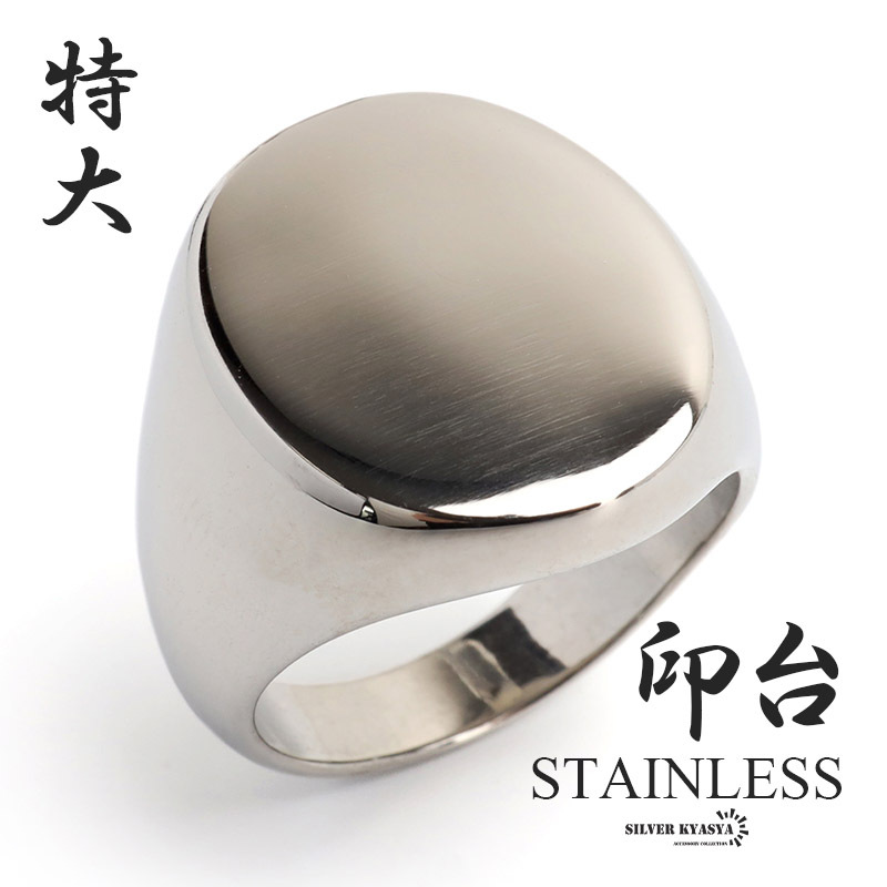 - (24号) ステンレス 特大 印台リング シグネットリング シルバー プレーン ラウンド シンプル メンズ 金属アレルギー対応