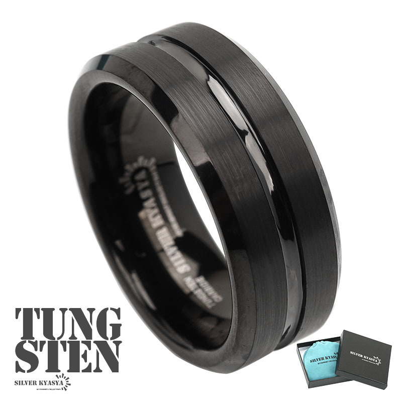 - (29号) 超硬 タングステン リング 指輪 マット 艶消し ブラック 黒 ヘアライン リング BOX付属
