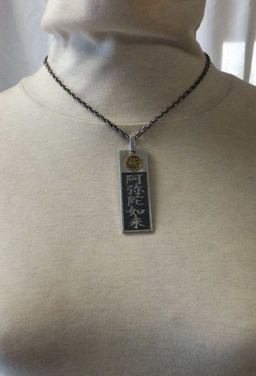 - ◆喧嘩札◆「阿弥陀如来」シルバー/真鍮 ペンダント お守り 梵字 総重量約39.82g
