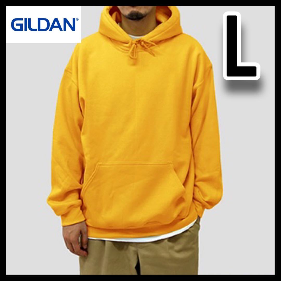- 新品未使用 GILDAN ギルダン 8oz プルオーバーパーカー 無地かぶりパーカー 裏起毛 ゴールド L サイズ ビッグシルエット フード