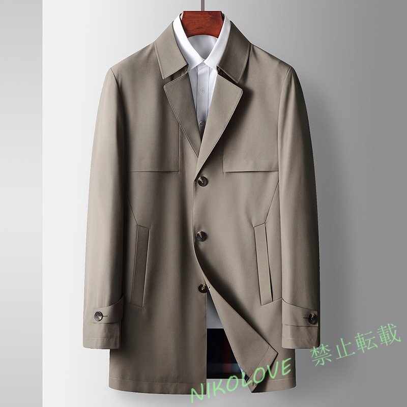 - ☆新品スプリングコート 無地 春秋冬 防風 メンズコート ビジネスコート テーラードジャケット 紳士服 アウター 背広 カーキ XL~3XL LK117