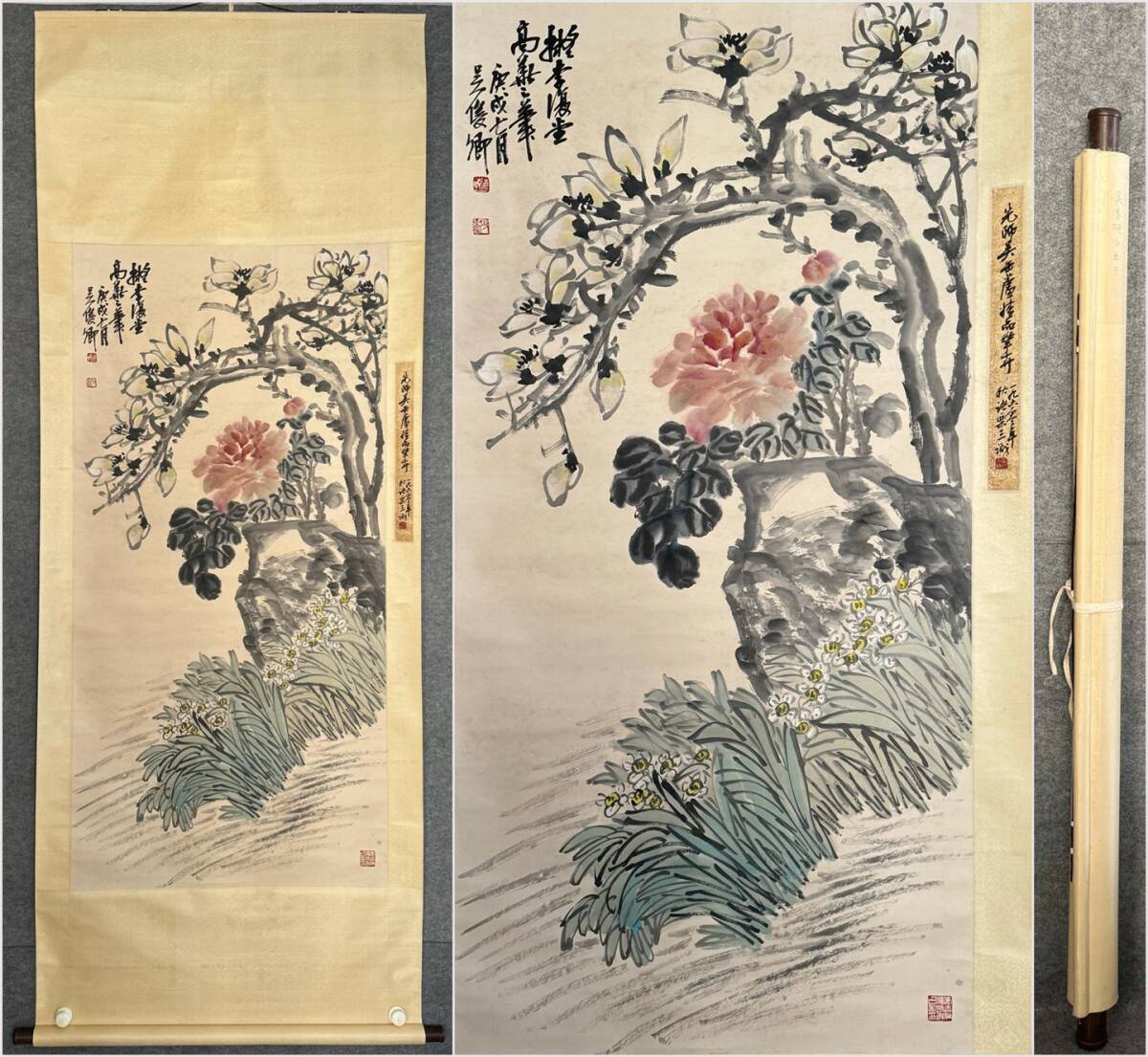 - 古美術 掛け軸 中国・近現代 「呉昌碩書」 紙本 【神仙富貴図】 立軸 書道 巻き物 肉筆保証 唐物 古画 画心137.5x67.5cm LT-250249