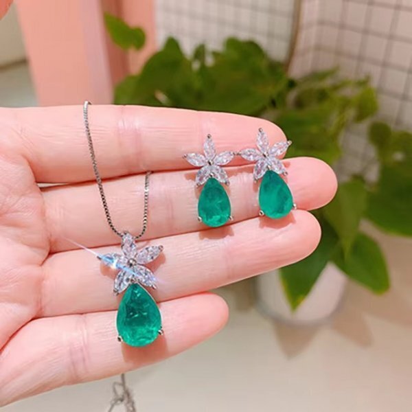女性用ジェムストーンジュエリーセット(ネックレス、ピアス)、エメラルド