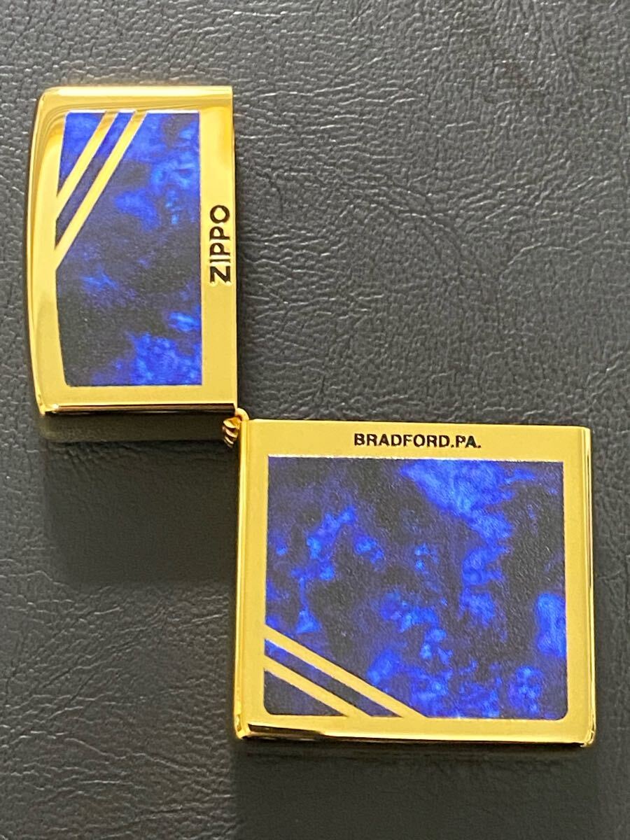 - zippo ゴールド ブルー マーブル 外側ケース アウター 両面デザイン 希少モデル 2022年製 GOLD BLUE