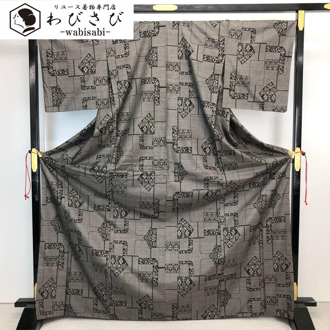 > 本場大島紬 証紙付 カタス7マルキ 茶泥染 花模様 トールサイズ K-4371