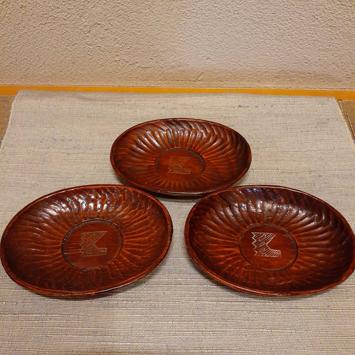 - 讃岐彫 茶托 煎茶道具 3枚 約11.3cm×8.5cm×1.7cm