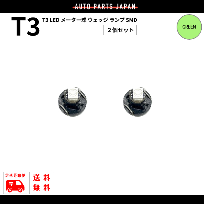 - 定形外 送料無料 T3 LEDバルブ 12V 緑 メーター球 ウェッジ ランプ LED SMD 2個セット 複数注文OK 新品 交換用 1球 グリーン ドレスアップ