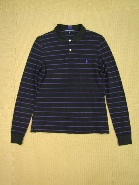 - F650*【L】RALPH LAUREN GOLF ラルフローレンゴルフ 長袖ポロシャツ ブラックxパープル ボーダー レディース ロゴ刺繍