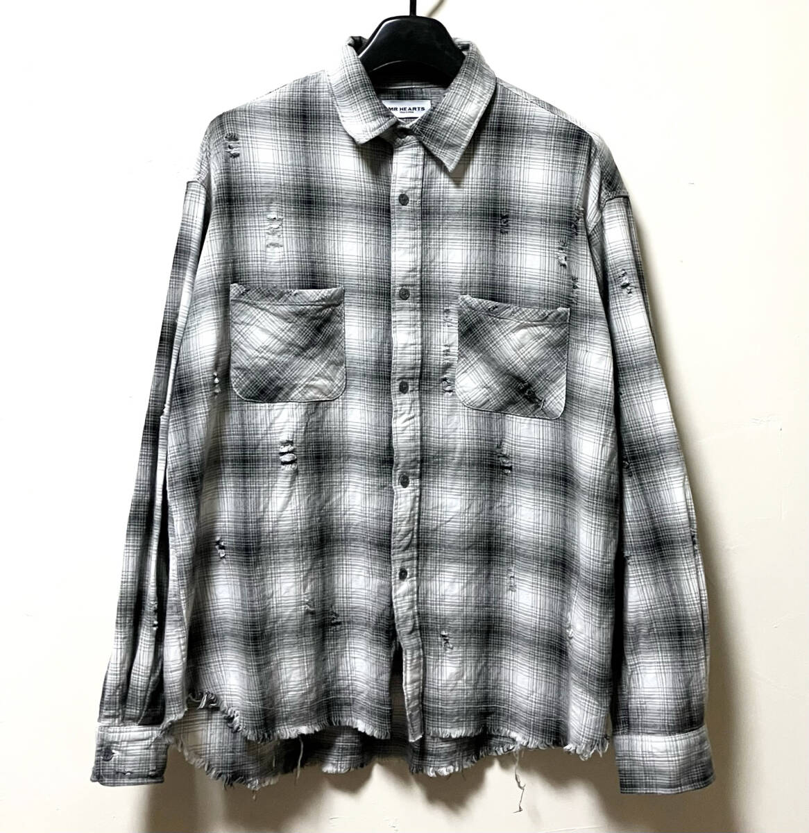 - MR HEARTS ミスターハーツ FREAK’S STORE フリークスストア 別注モデル オンブレチェックシャツ ネルシャツ ダメージ加工 サイズM
