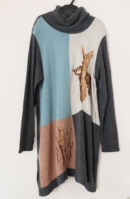 - ハイデザイン!duemila ミラショーン di mila schon 40 長袖ワンピース ニット レッサーパンダ柄 アンゴラ混 日本製