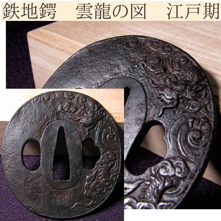 - 時代武具 鉄地鍔 雲龍の図 桐箱付 江戸時代/鐔/25b009