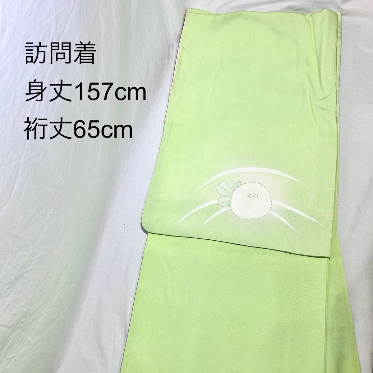 ★美品★ 付下げ 付け下げ 正絹 着物 袷 広衿 手縫い グリーン系 若苗色 万寿菊模様 結婚式 フォーマル 女性 婦人 レディース (02137並