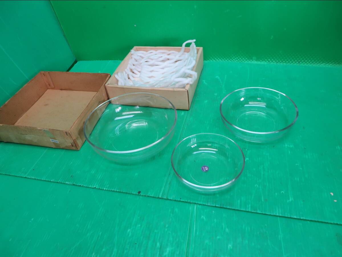 - W-609■長期保管品!未使用! ガラスボール ガラス皿 3点セット(内径:約13.2cm/16cm/20cm)