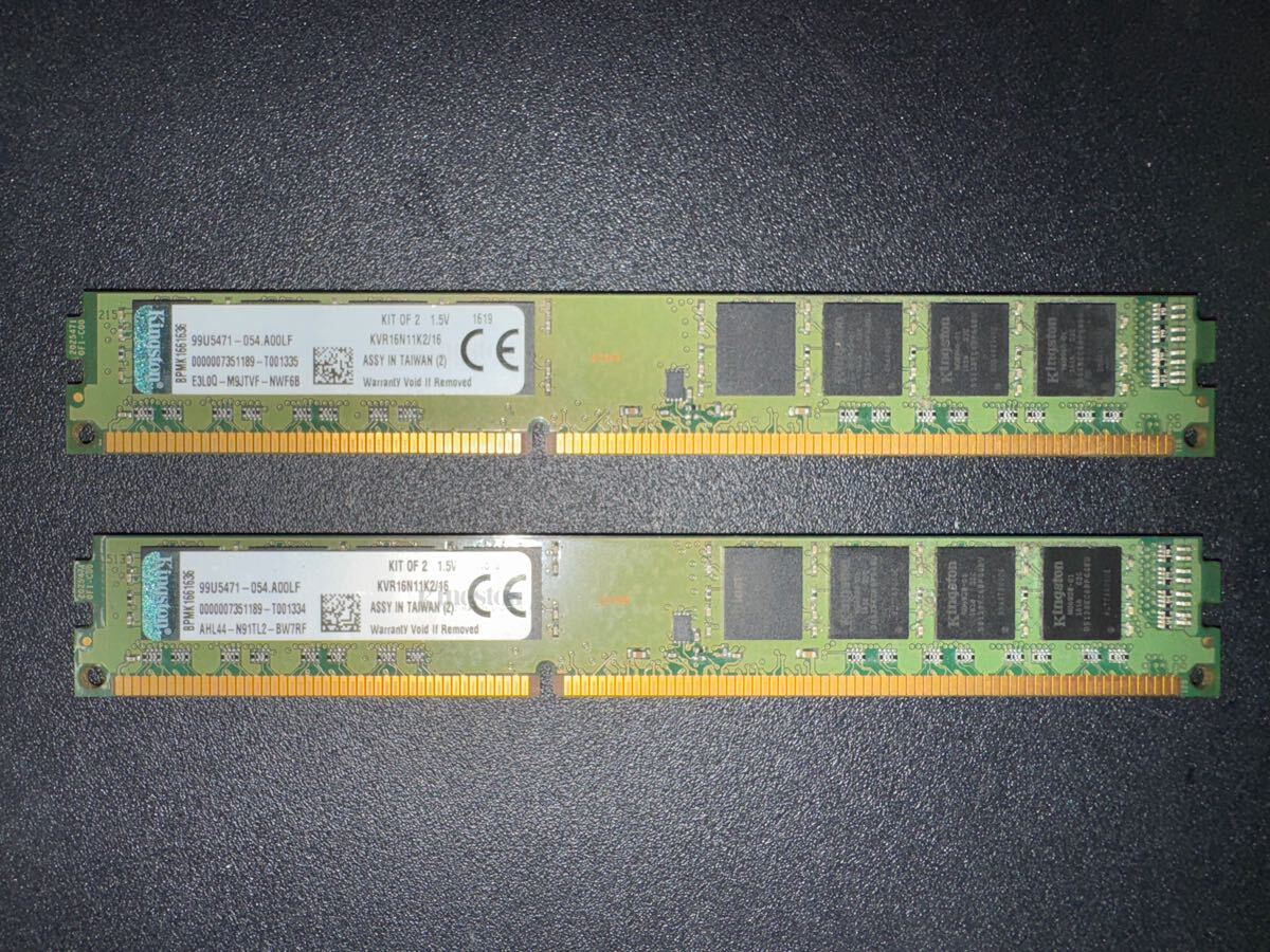 > 【中古動作品】Kingston KVR16N11K2/16 DDR3 PC3-12800 8GB【2枚セット】