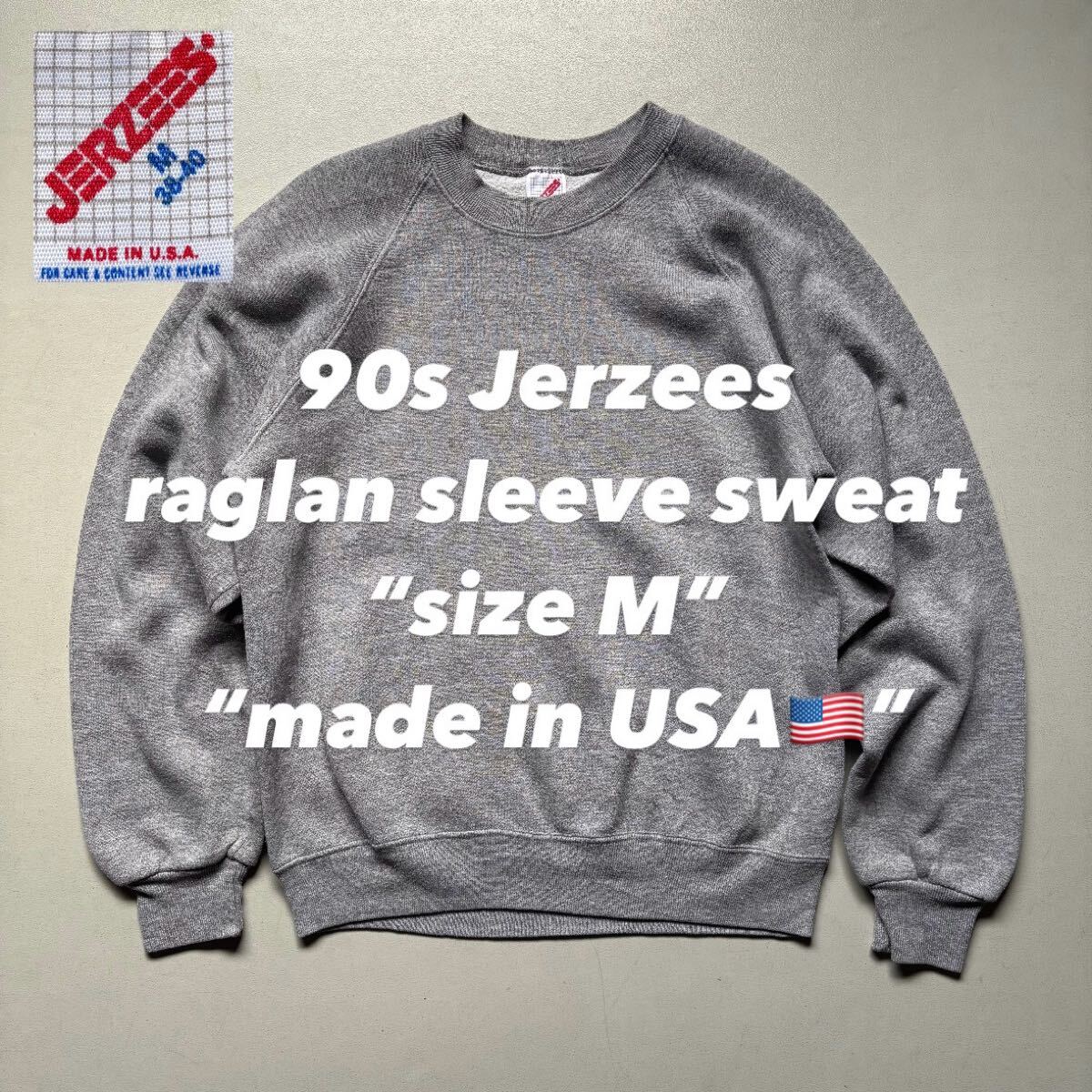 > 90s Jerzees raglan sleeve sweat “size M” “made in USA” 90年代 ジャージーズ ラグランスウェット グレー 無地 プレーン トレーナー