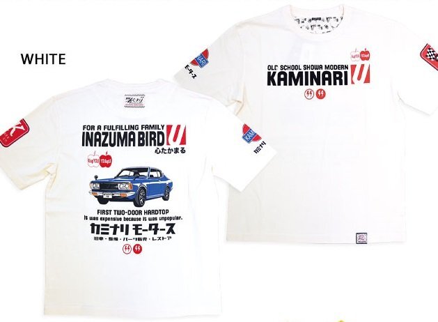 - INAZUMA BIRD半袖Tシャツ◆カミナリ ホワイトXXLサイズ 2限定解除 KMT-251 雷 エフ商会 4代目 ブルーバードU ニッサン 昭和 旧車