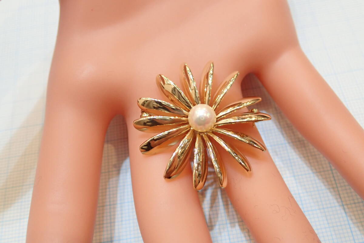 - ■585(K14) 6.45mm あこや真珠ブローチ■6.6g■本真珠■中古美品■