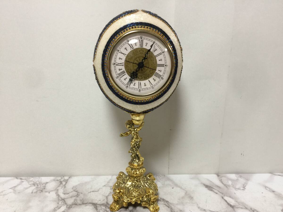 - エッグアート 卵 置時計 小物入れ 高さ約30cm オブジェ インテリア アンティーク 動作確認済 B