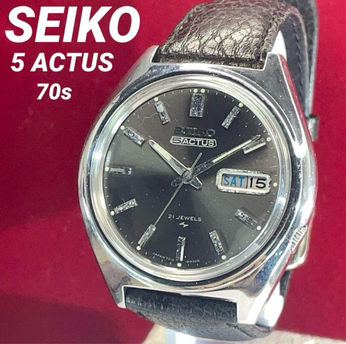 > SEIKO 5 ACTUS 自動巻 21石 日本製 グレーダイヤル 腕時計 ヴィンテージ アンティーク 稼働 メンズ セイコー デイデイト