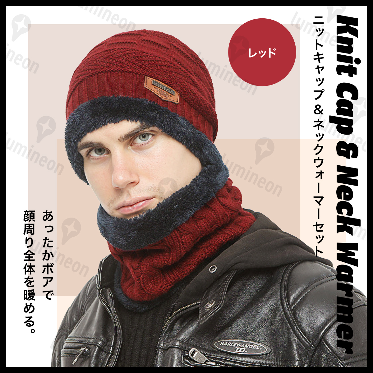 - ニット 帽 ネックウォーマー セット メンズ 防寒 スヌード マフラー 暖かい 裏起毛 帽子 キャップ おしゃれ スキー スノーボード g326b 3
