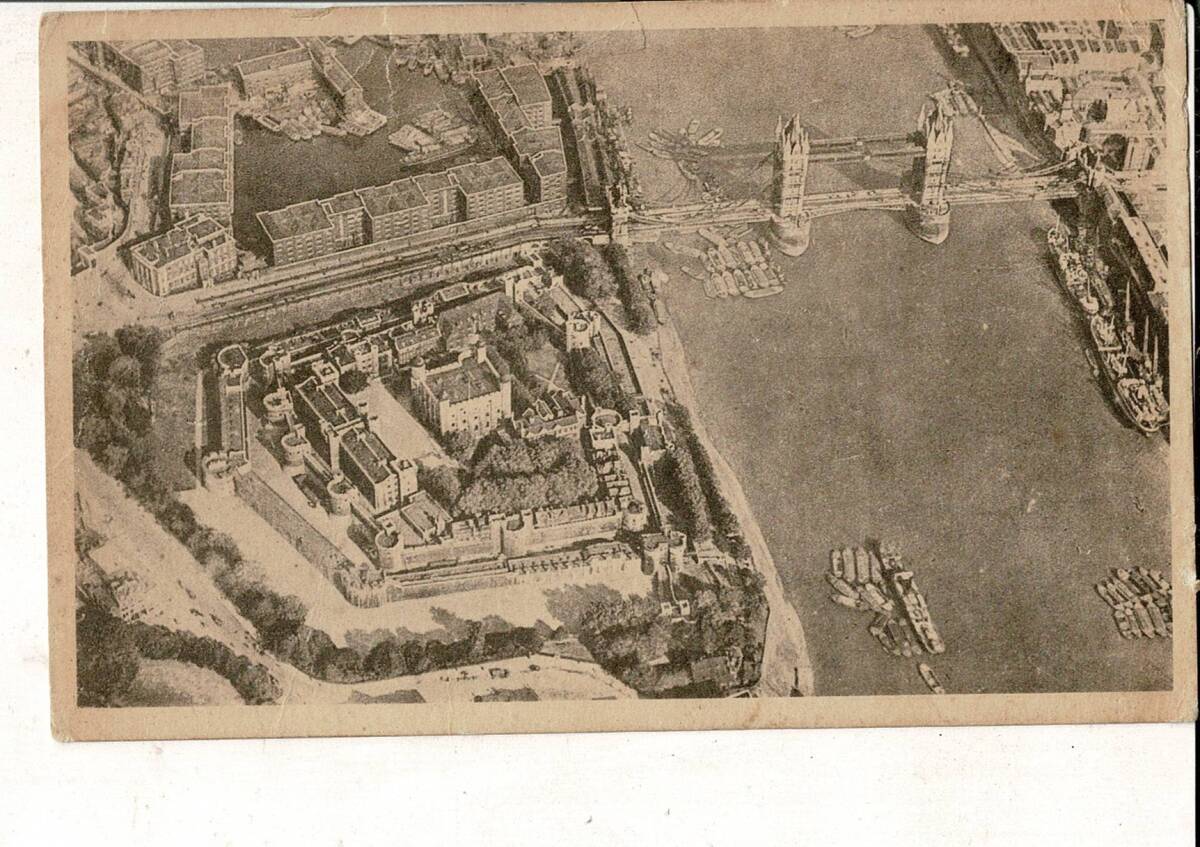 > *The tower of london from the air no. 1 使用済ポストカード 1924.8.6 earls court s w 5消印 パリ宛 10cent stamp 折れ RPS06925KI69