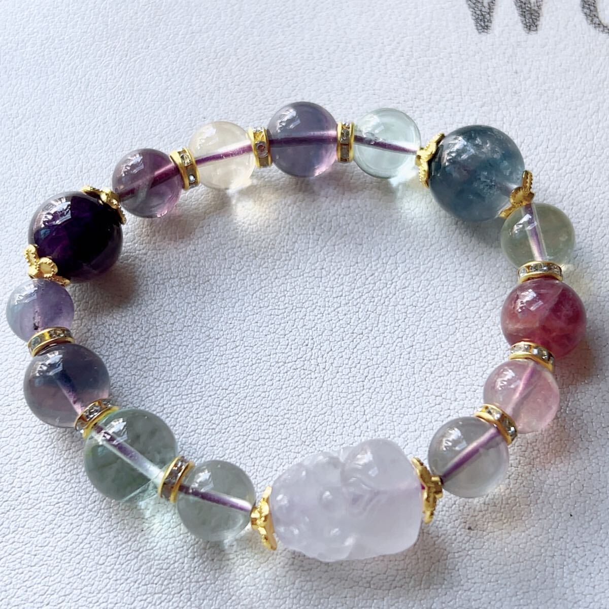 > ◇フローライト◇螢石◇貔貅一粒◇ブレスレット◇パワーストーン◇天然石◇巾着袋付き◇プレゼントにも033B2174