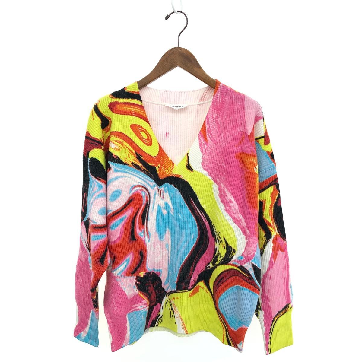 - ◆Desigual デシグアル 長袖ニット サイズ:L◆ マルチカラー レーヨン レディース トップス Vネック
