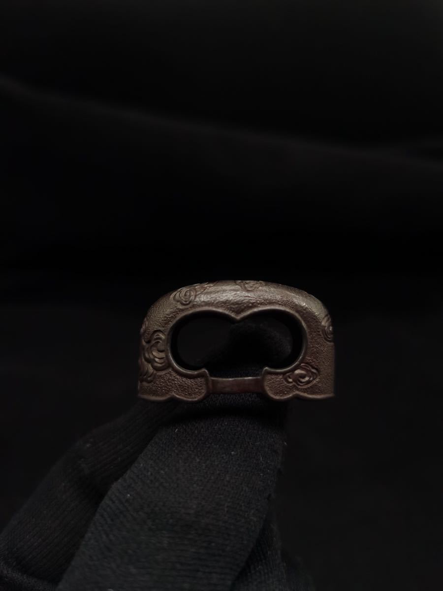 - s-038 祥雲図鐺 精密切彫 容彫 日本刀 武具 刀装具 銅製 小道具 鍔 目貫 縁頭 拵 幅 3.35CM