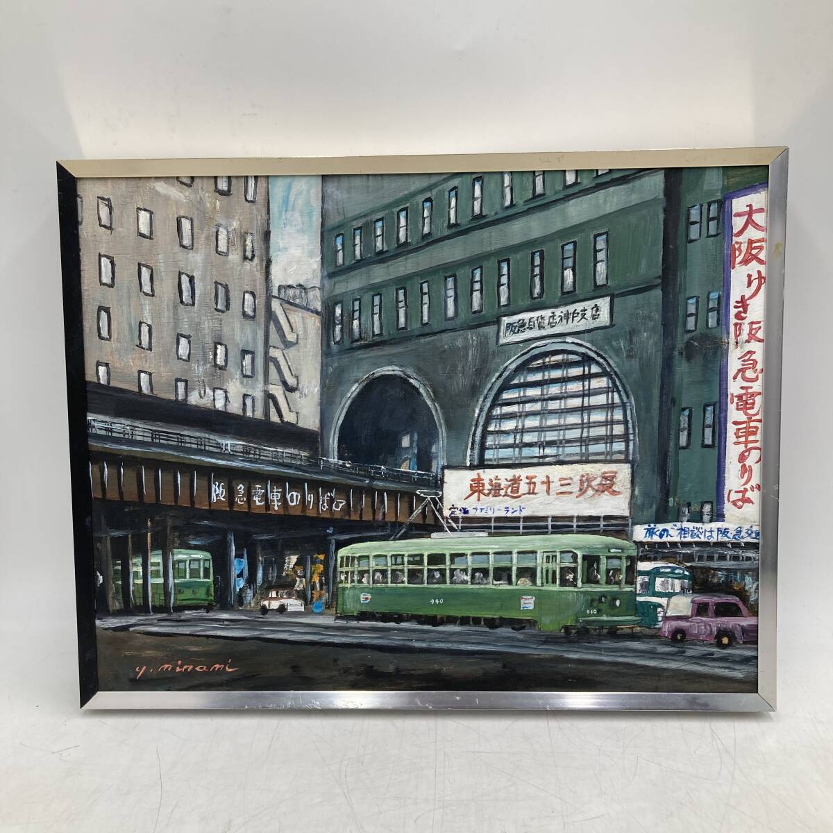 - 【真作】油彩 南康夫 「阪急三の宮駅」 美術 風景画 芸術 1点