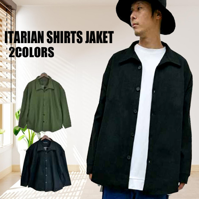 - メルトン素材 イタリアンカラー 長袖シャツ ジャケット rv8002 メンズ フラノシャツ ジャケット 新品 ブラック L