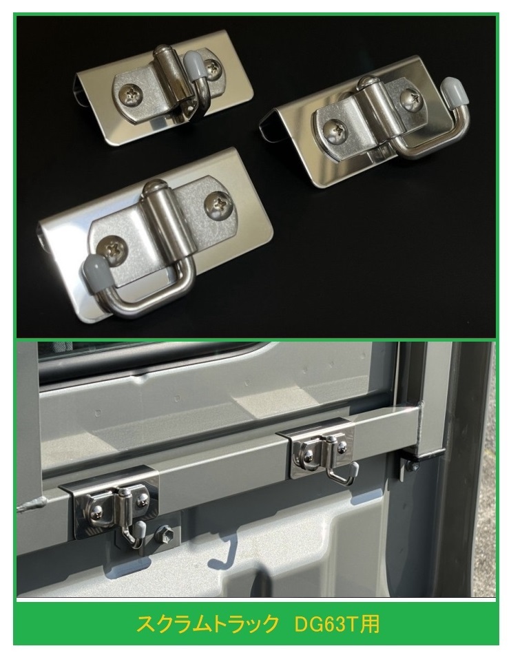 - ◎軽トラ 荷台鳥居(アングルポスト)用 便利アイテム 多目的ステンレスフック 3個SET スクラムトラック DG63T
