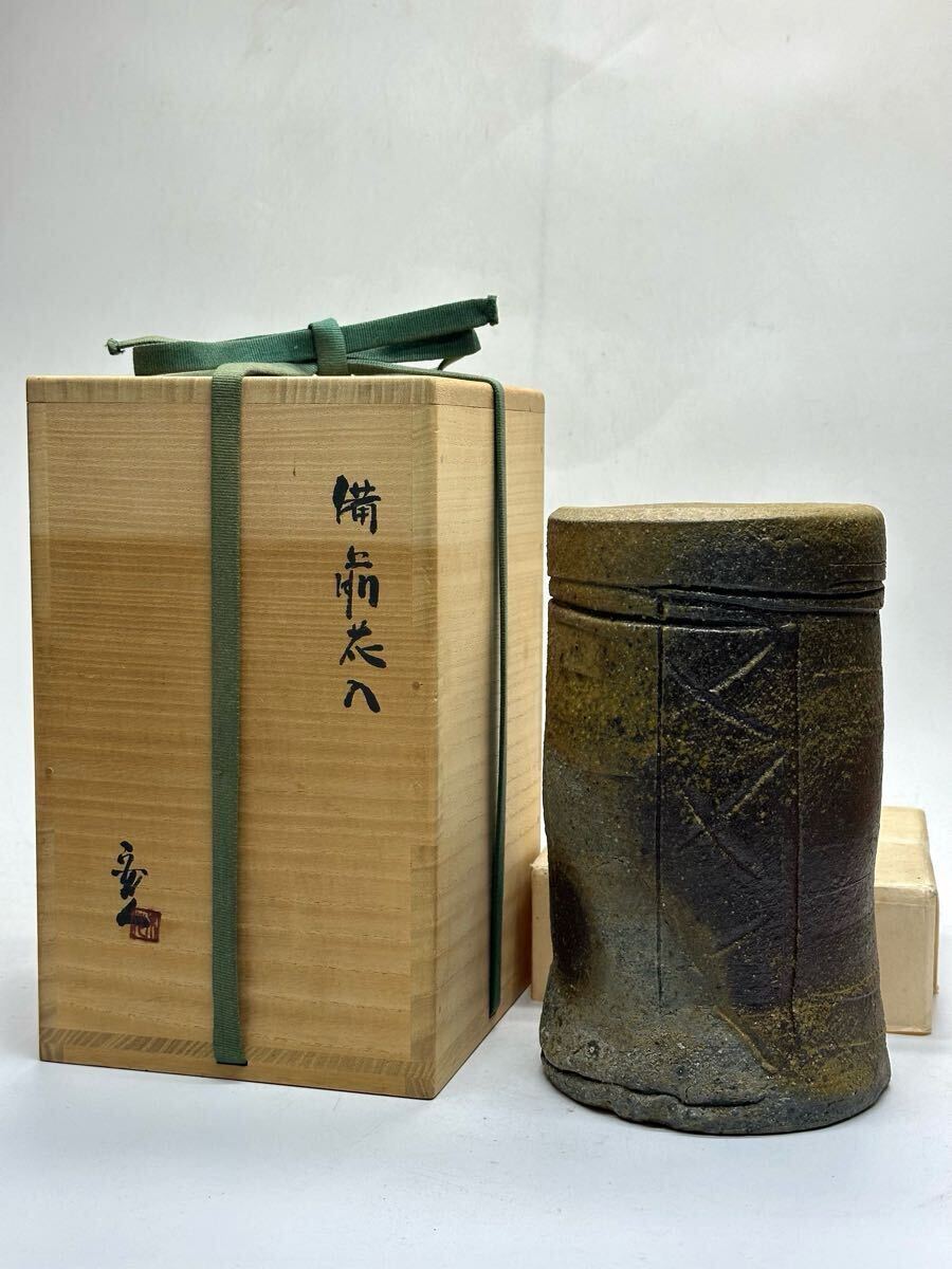 - 個展作 安倍安人 備前 檜垣文 花入 共箱 ⑤